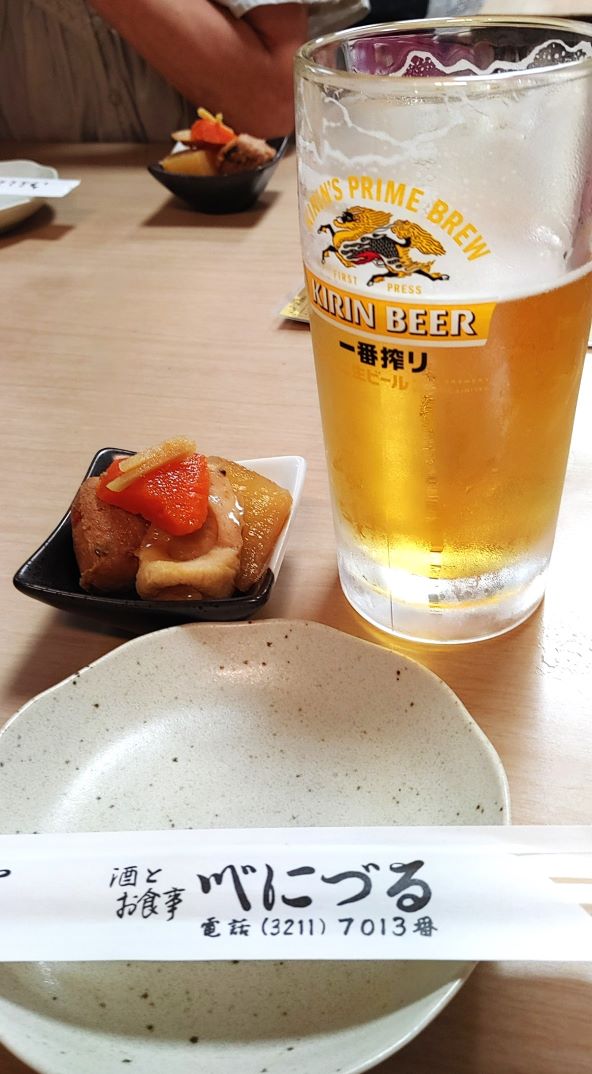 横目でビールを飲んでる人のジョッキをみると、めちゃくちゃでかいのでグラスにしてみた。