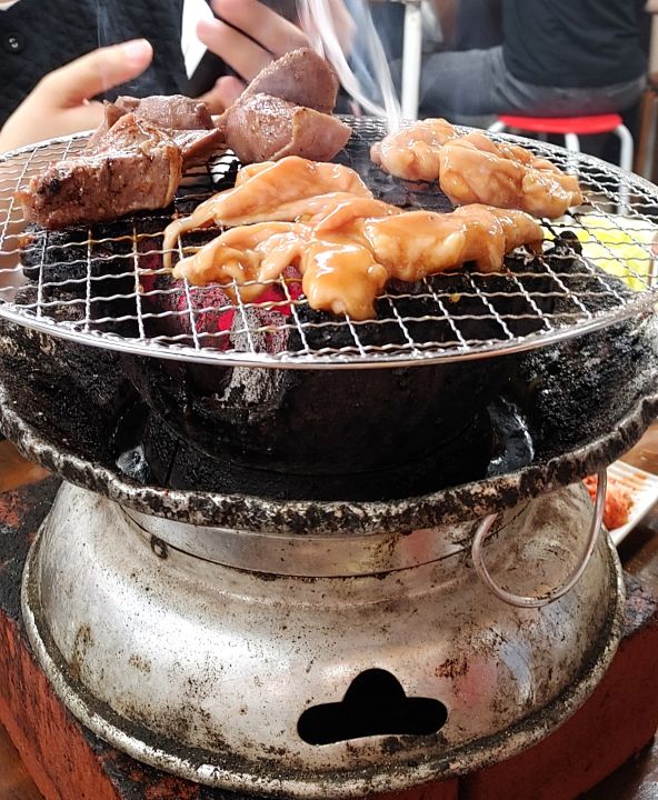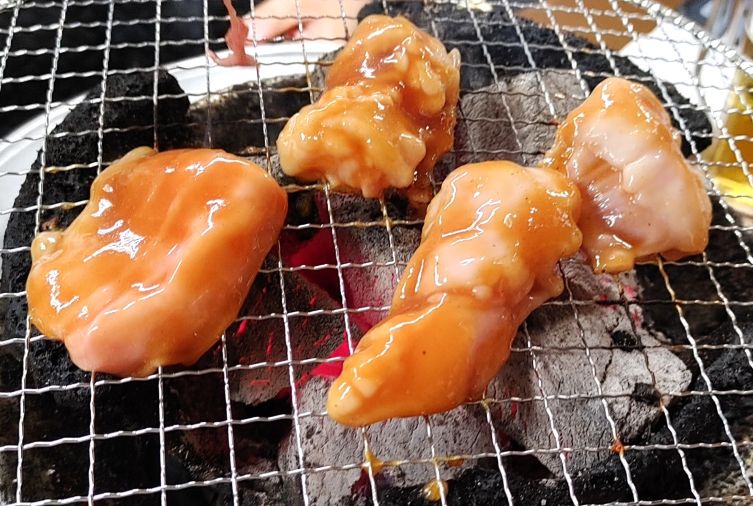 煙の向こうには焼かれている肉たち。