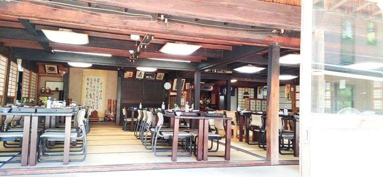 次は昼食♪檜原村名物「かぶと造り」屋根の「三頭山荘」。元々お蚕さんを飼うための家だったらしく、2階から上は博物館になっている。
